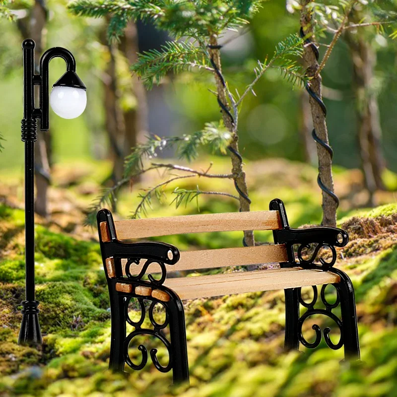 Wooden Park Bench & Street Lamp Micro Landscape Figurines Doll House Furniture Miniature Decor Toy DIY Craft Home Decoration