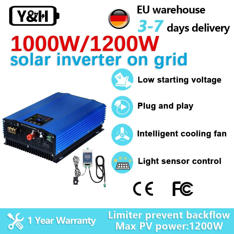 Y&H 1000W Solar Gird Inverter Photovoltaic Network Inverter 1200W 24V 48V Converter 230V Pure sinusoidal Solar Power Inverters