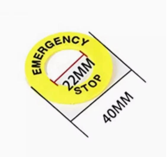 Yellow Emergency Stop PushButton Switch Accessory Warning Legend Label Mark Round Ring Plate 90mm 60mm 46mm 40mm