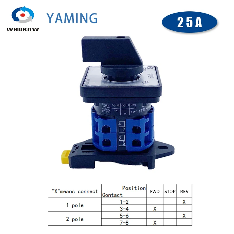 YMW26 LW26-25/2 DIN Rail Mount FWD-STOP-REV Changeover Rotary Cam Switch 25A 690V Selector Silver Contact Control Motor LW28