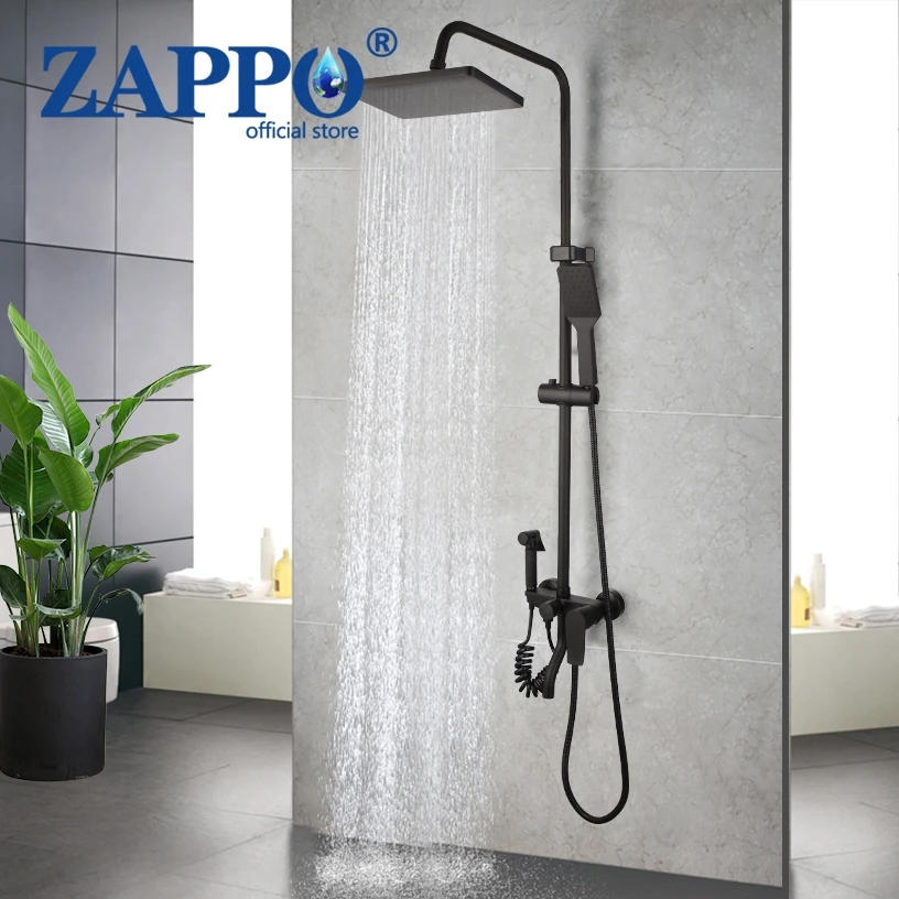 ZAPPO Matte Black Shower Faucet Mixer Tap W/Bidet Bathtub Shower Faucet Rain Shower Head Set Rainfall Shower System