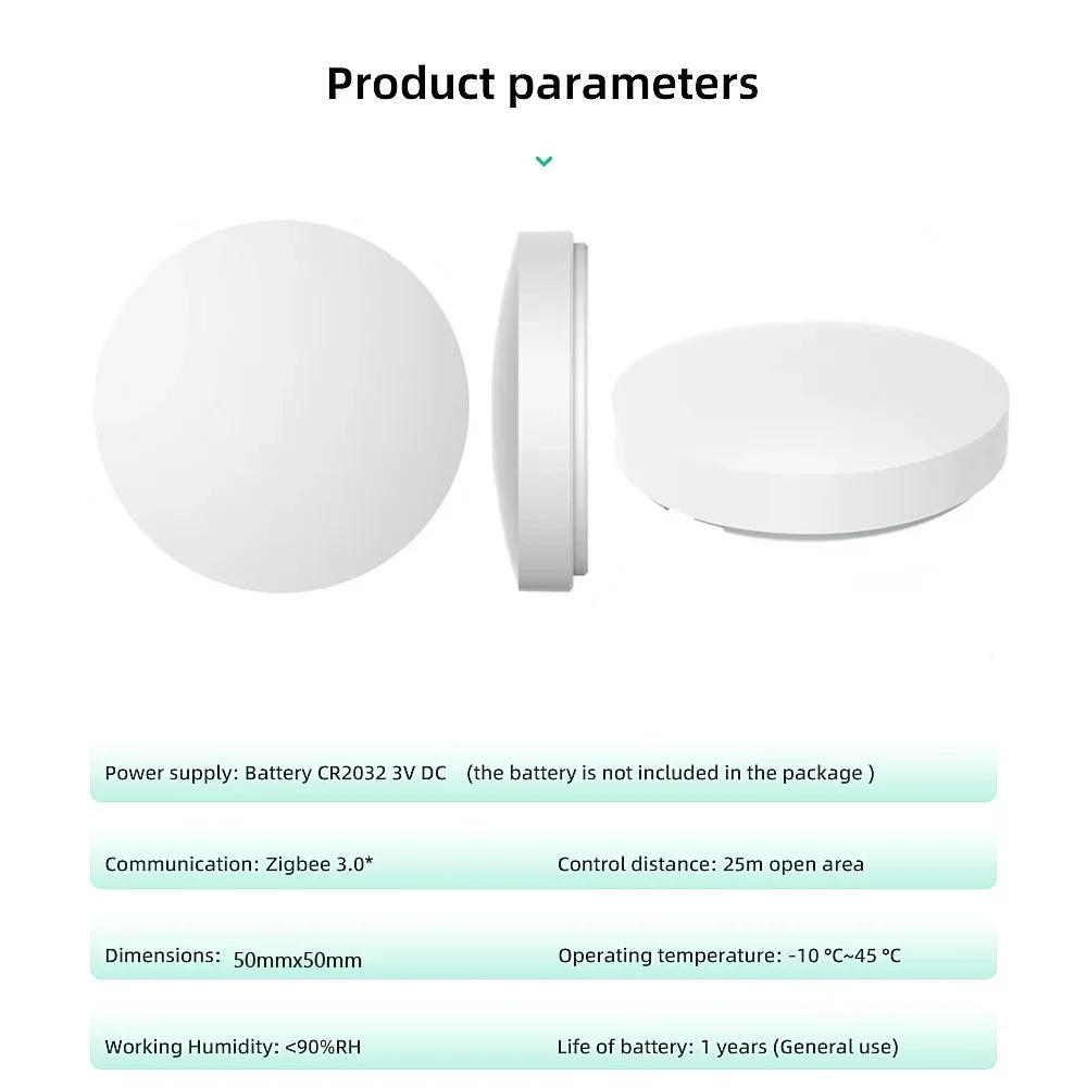Smart Zigbee Scene Control Knob – Wireless Dimmer Switch with Direct Bulb Pairing Core Specifications: Parameter Specification Wireless Protocol Zigbee 3 (No Hub Required for Bulbs) Power Supply CR2032 Battery (2-Year Lifespan) Control Range ≤30m (Open Area) Dimensions Φ60×20mm (2×0") Mounting Adhesive or Magnetic Backing Compatibility Zigbee three Bulbs, Plugs, Curtains, ACs Key Features: ✅ Multi-Device Scene Control: Single Press: Activate "Home Mode" (lights on, AC set to 22°C) Double Press: Trigger "Away Mode" (shut off all devices) ✅ Intuitive Dimming & Color Control: Rotate to regulate bulb brightness (1%-100%) or CCT/RGB color temperature Long-press (3s) to cycle via 16 million RGB colors ✅ Gateway-Free Operation: Directly pairs with Zigbee 3 bulbs/plugs without a hub Wall-mount or transportable placement (stick to metallic surfaces) Technical Certifications: CE/FCC/RoHS Certified Applications: 🏠 Living Room: Adjust atmosphere lighting throughout film nights 🛏️ Bedroom: Sunrise simulation with slow brightness develop 🚿 Bathroom: "Shower Mode" to close curtains and switch on exhaust fan Installation Guide: Peel adhesive backing and connect to desired surface Pair with Zigbee devices by way of app (iOS/Android) Assign scenes to press/rotate actions Package Includes: 1× Zigbee Control Knob 1× CR2032 Battery 2× Mounting Adapters (adhesive + magnetic) Performance Data: Metric Value Response Time ≤0 Operating Temp -10°C to +50°C Button Lifespan 100,000+ Presses Advanced Functions: Music Sync: Rotate to regulate speaker volume* (*requires compatible device) Child Lock: Disable unintentional scene changes Custom Scenes: "Party Mode" (strobe lights + max AC cooling) Note: For Zigbee devices, use with a Zigbee hub (sold separately) Avoid placement close to huge metal gadgets The following are all the sales specs of this product: Zigbee Scenario Knob Switch Black Zigbee situation button+rotary change white Zigbee one button change white