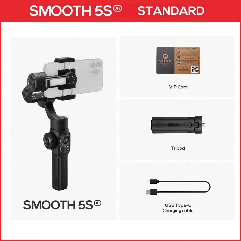 Zhiyun Smooth 5S AI Smartphone Stabilizer Gimbal 3-Axis Handheld for iPhone 15 Pro Max 14 13 Iconic Brand Samsung Huawei VS DJI OM 6