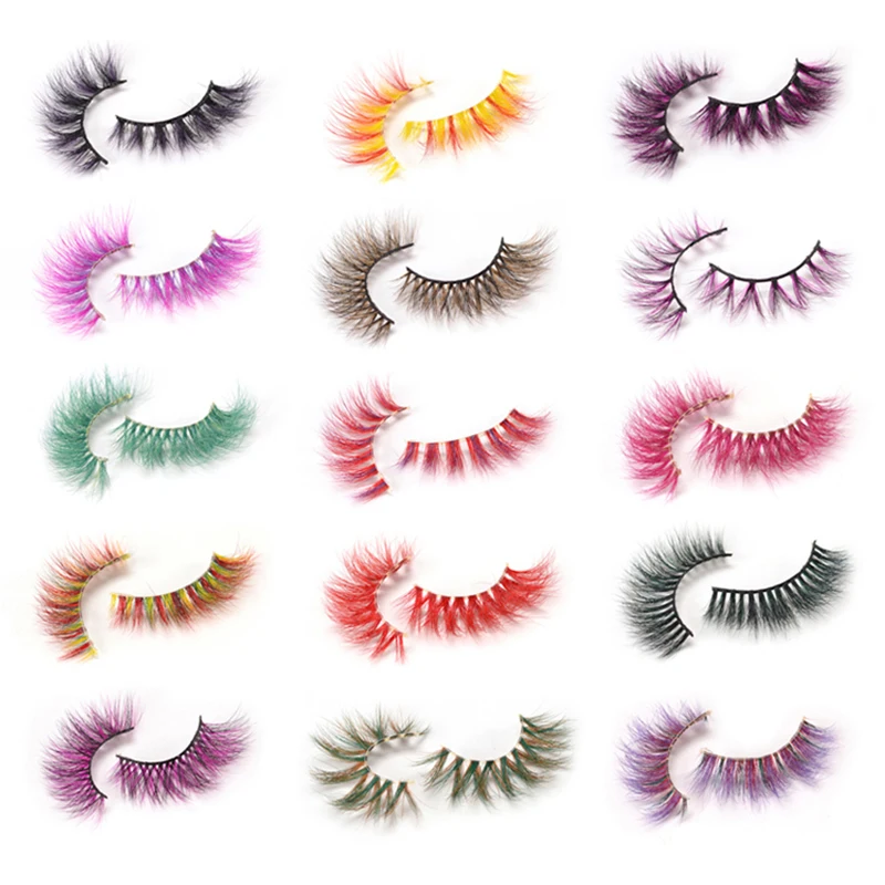 3D 5D Real Mink Strip Fake Colored Eyelashes Pink Green Purple Red Faux Lashes Colorful Rainbow Lashes for Cosplay Halloween