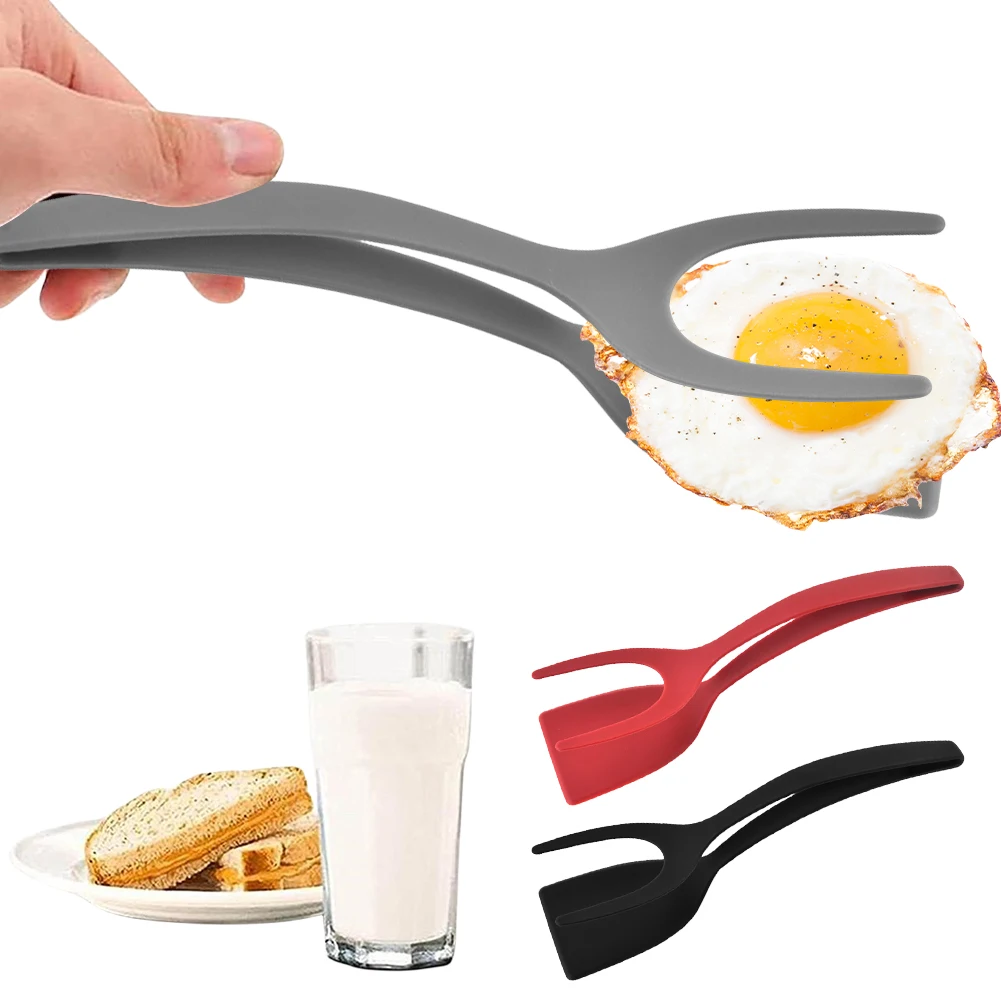 2 In 1 Shovel Clip Silicone Grip Flip Tongs Egg Steak Spatula Tongs Clamp Pancake Fried Turners Cooking Tool Kitchen Accessories