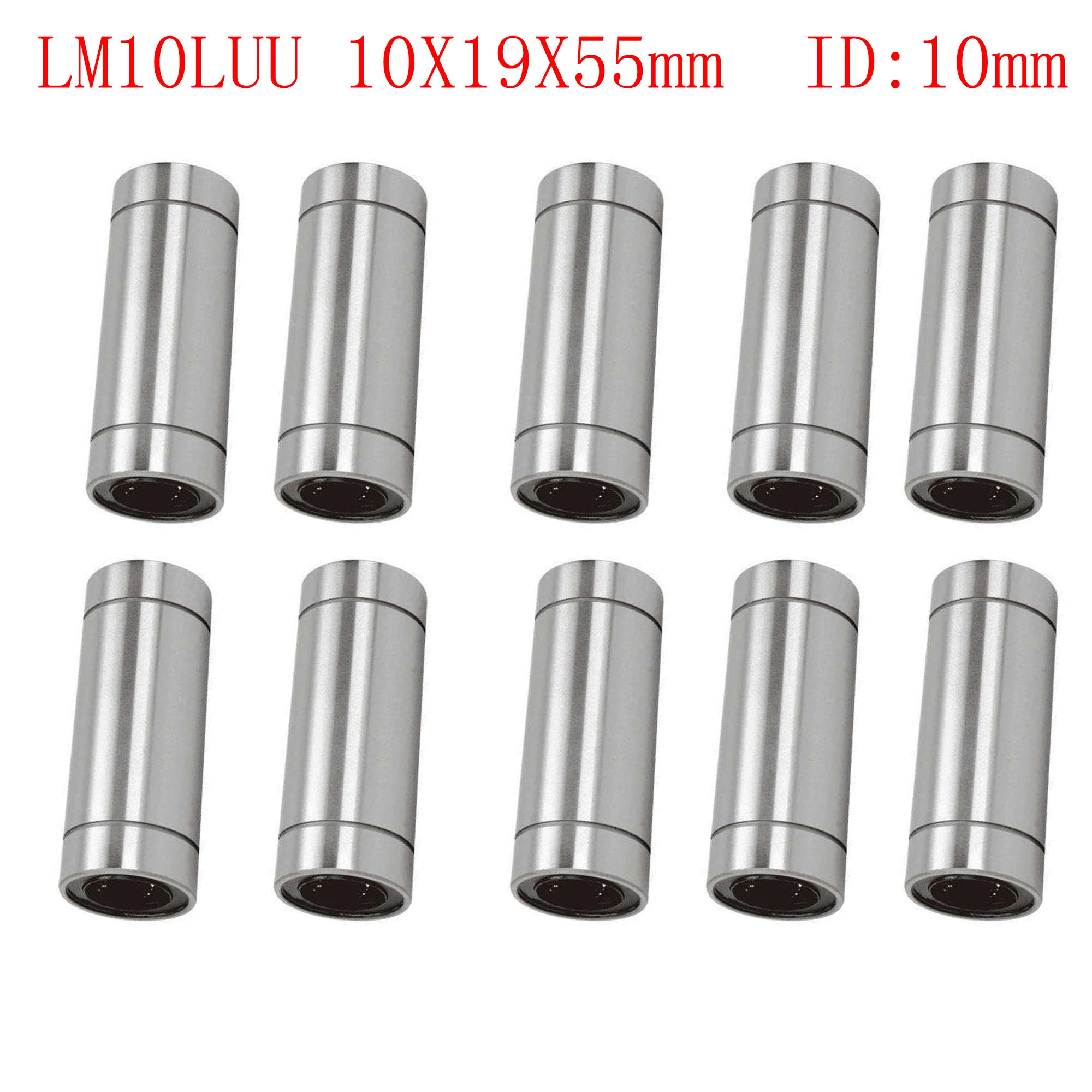 10PCS LM10LUU 10X19X55MM ID= 10 MM Long Type 10*19*55 MM Linear Ball Bearing Guides Optical Axis