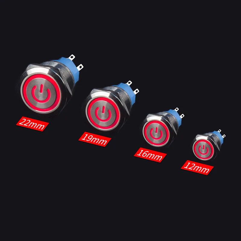 12/16/19/22mm Waterproof Metal Push Button Switch LED Light Momentary Latching Car Engine Power Switch 5V 12V 24V 220V Red Blue