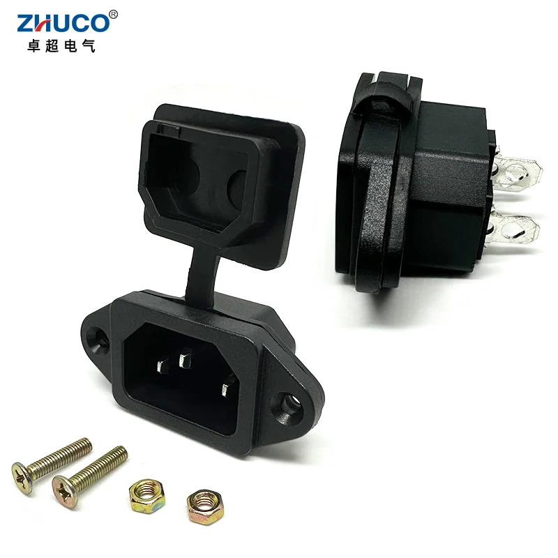 1PC LZ-14-1-01 3Pins IEC320 C14 Plug Connector10A 250V AC Electrical Panel Mounted Power Socket With Waterproof PVC Cover Description: Model:LZ-14-1-01 with PVC hide Certificates:CCC/TUV/CE/UL/KC Rating:10A 250V Temperature Range:-40℃ to 70℃ Life Time:Over 10000 cycles Insulation Resistance:≥100MΩ Contact Resistance:≤20MΩ Conductive Material:Brass Shell Material:Nylon/PA66 PC Actuaing Force:5N to 40N Ambient Temperature:-20℃ to 55℃ Withstand Voltage:AC 500V (50Hz)/min Packing:1 pc socket +1 personal computer PVC cover+ 2 units screws