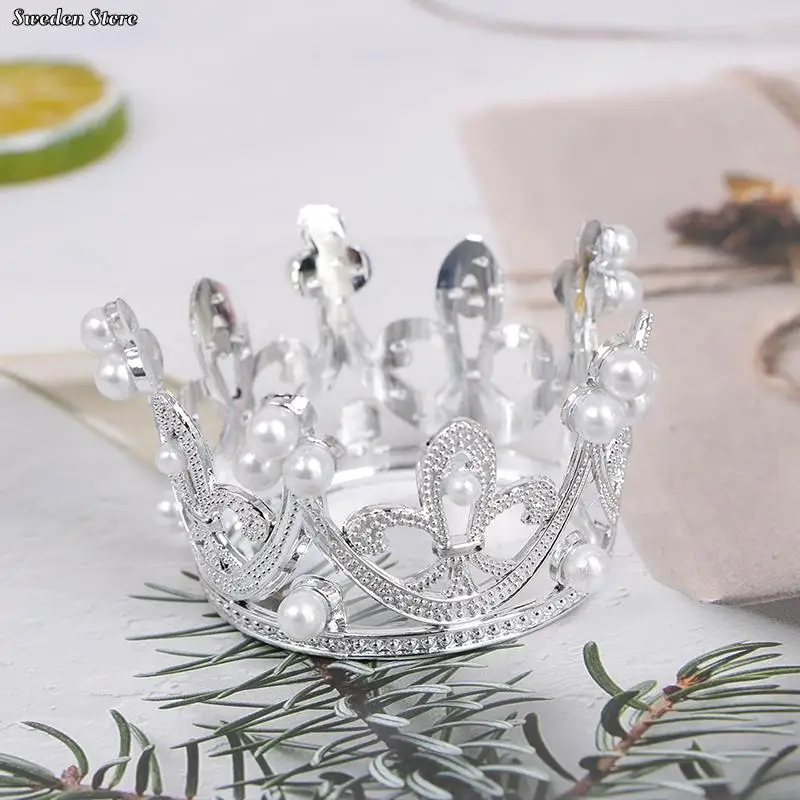1pc Mini Crown Cake Topper Crystal Pearl Tiara Children Hair Ornaments Elegant Wedding Party Decoration Supplies
