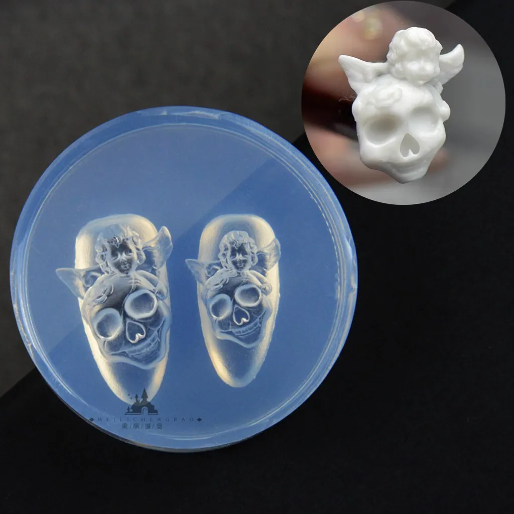 1pc Skull Heart 3D Acrylic Mold Nail Art Decorations Nails DIY Design Silicone Decorated Halloween Templates Nails Mold