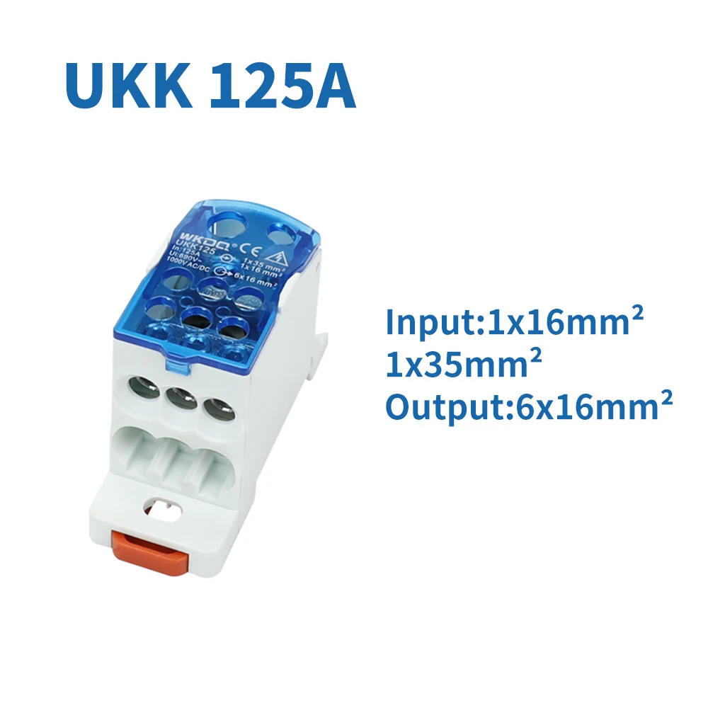 1Pc UKK125A Junction Box 1 In 6 Out Universal Wire Electrical Connector Din Rail Terminal Block Power Distribution Box UKK 125A