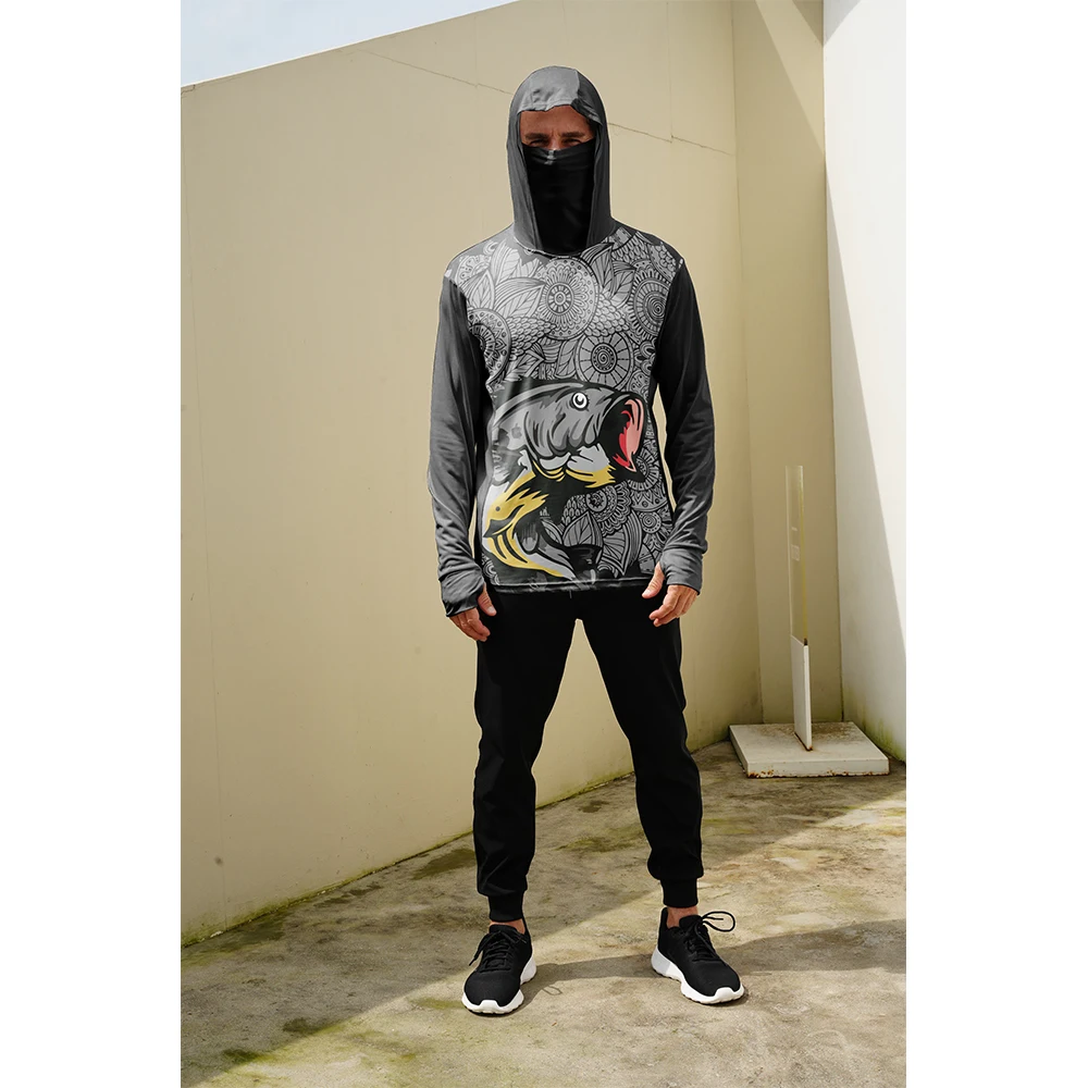 2024 Fishing Shirts Men Hooded Mask Fish Tops Anti-UV Breathable Clothes Summer Long Sleeve Fishing Shirt