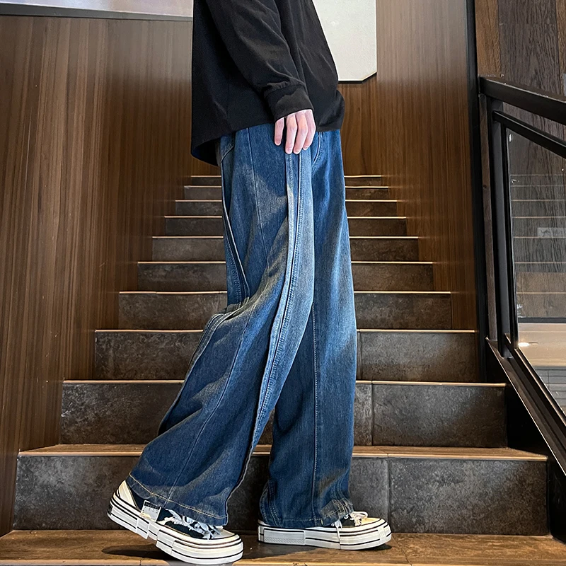 2024 Men Summer Vintage Fashion Loose Straight Jeans Mens Wide Leg Denim Pants Male High Street Oversized Baggy Trousers F139