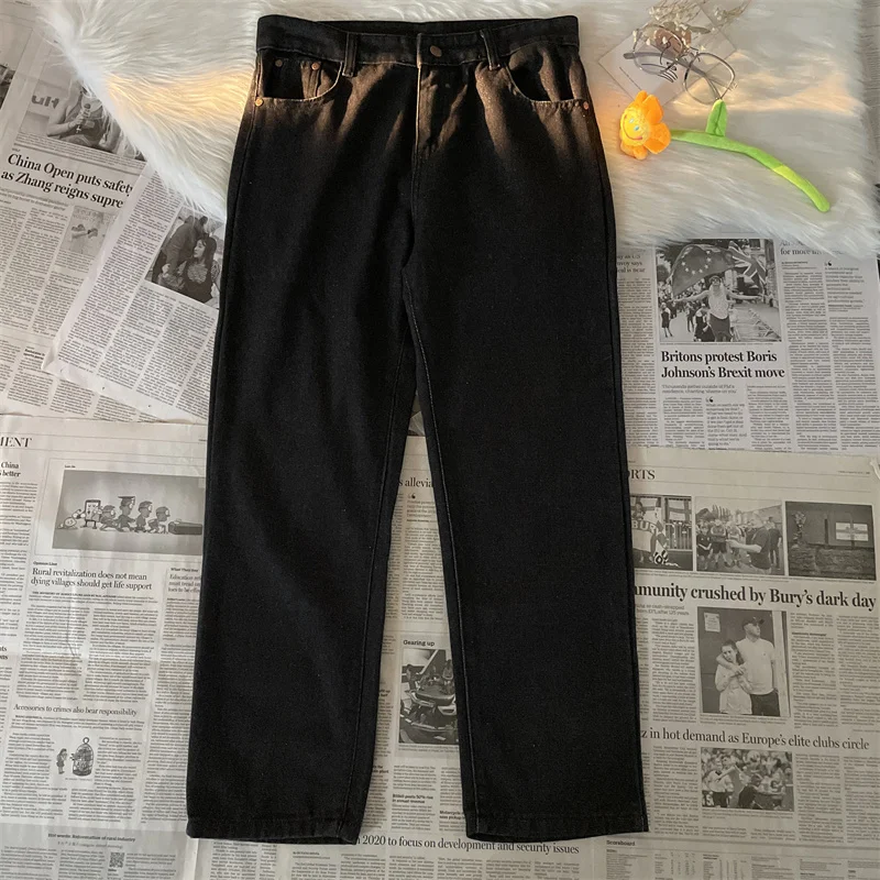 2024 Spring Summer Men's Fashion Student Long Straight Pants Male Solid Color Thin Jeans Men Loose Casual Denim Trousers F204
