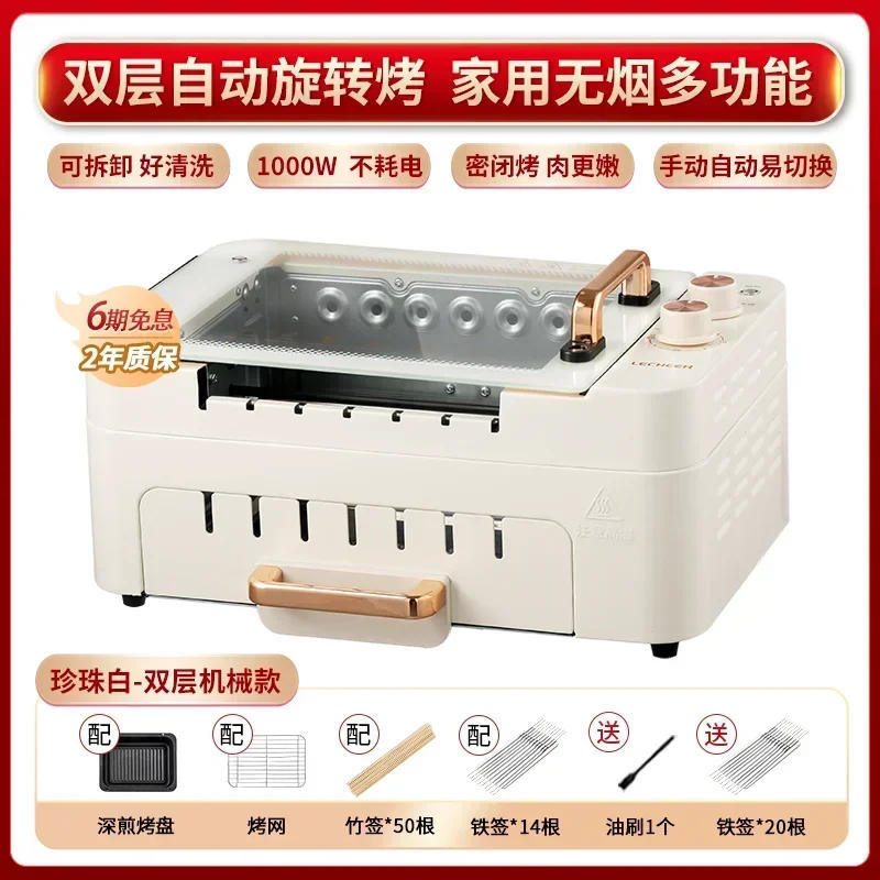 220V Barbecue Machine Smokeless Automatic Rotation Indoor Kebab Multi-function Skim Electric Barbecue Grill Smokeless Grill C