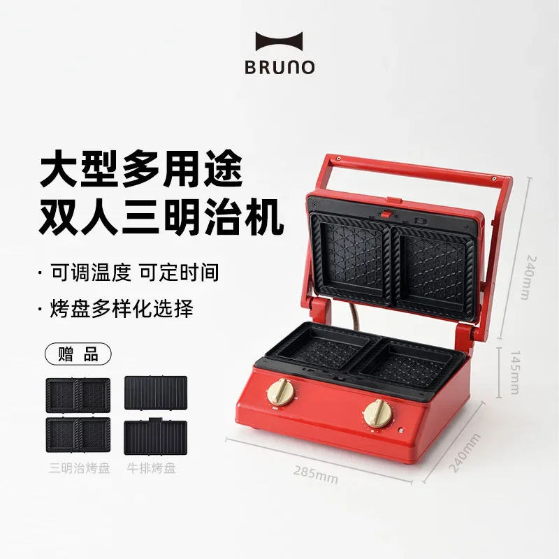 220V BRUNO Large Sandwich Maker Breakfast Machine Toaster Grill Multifunctional Home Use AK