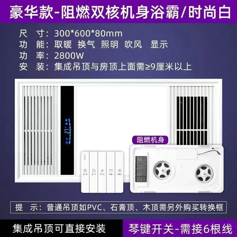 220V Integrated Ceiling Exhaust Fan with Lighting Five-in-One Bathroom Heater Fan, Ventilation Fan Combo