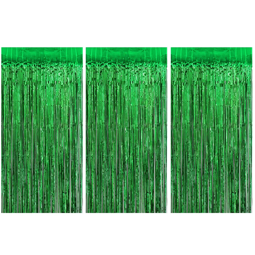 3 Pcs Green Rain Curtain Tinsel Party Background Fringe Backdrop Foil Metallic Line Plastic