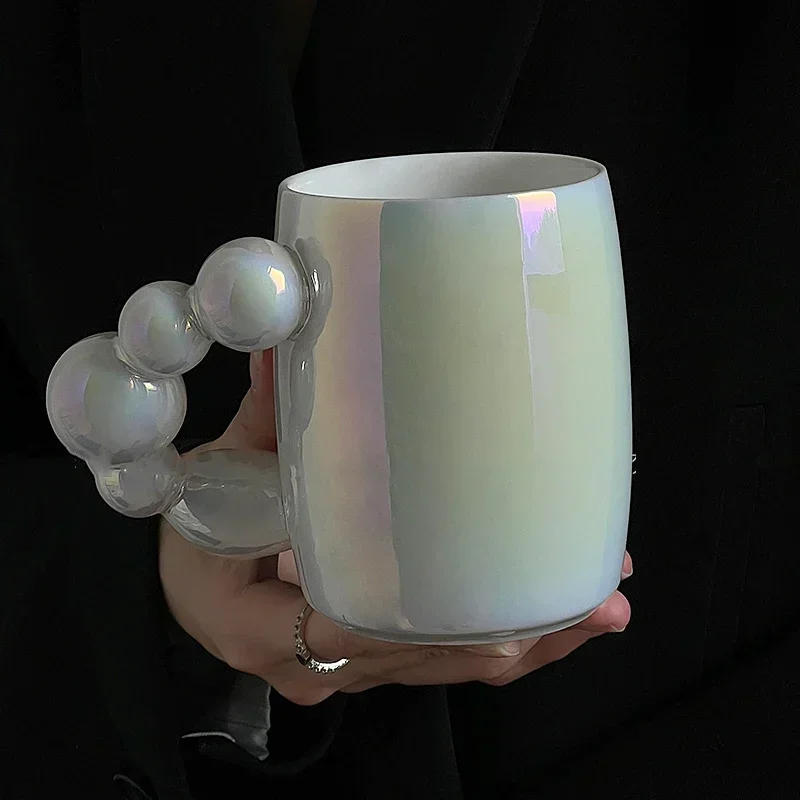 360ml Pearlescent Ceramic Mug Pearl Design Handle Coffee Milk Cup Personalized Handle Home Glass Drinking Mug Cup