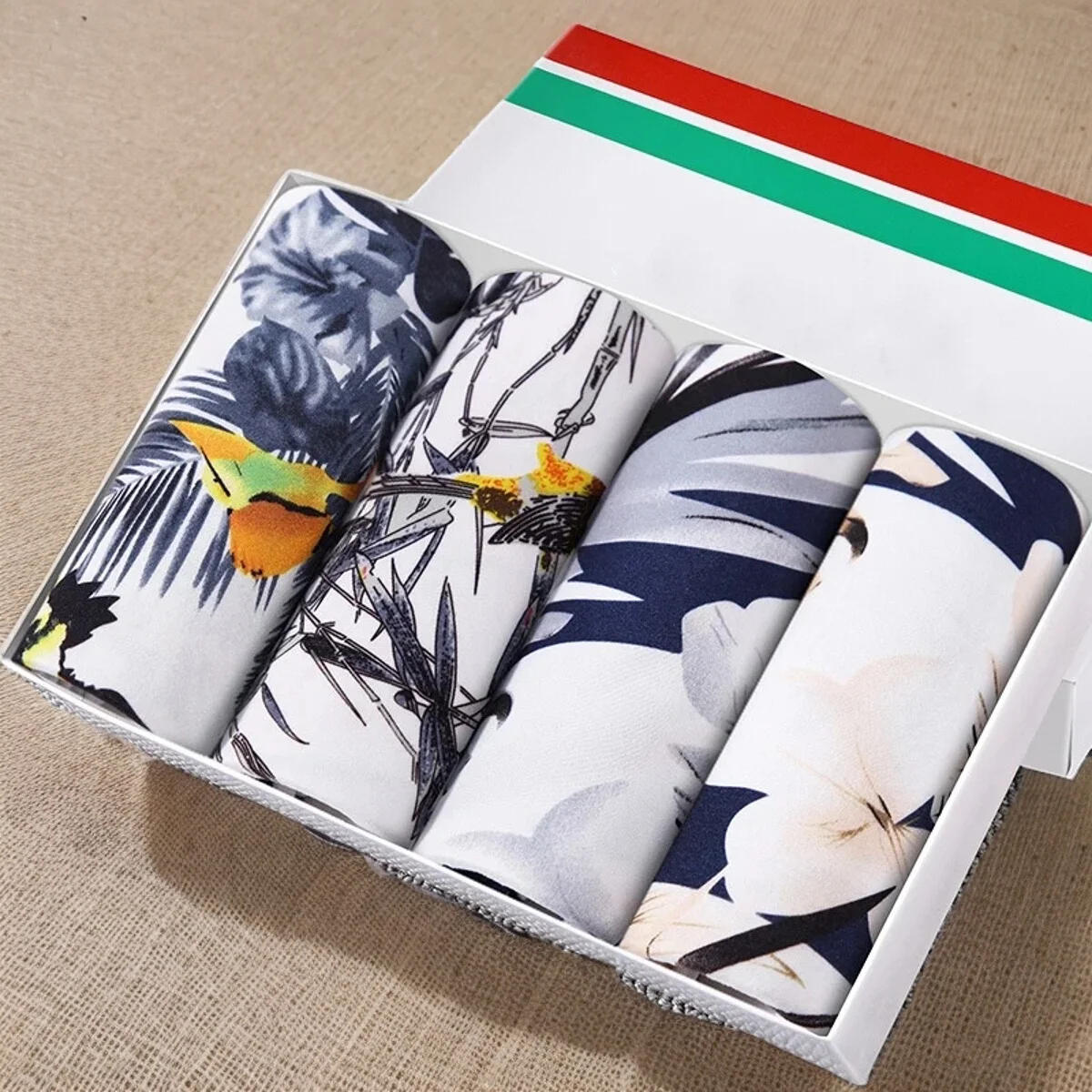 4 Pieces Men Printing Boxers Shorts Underpants Underwear XXL 3XL 4XL 4 Colors Mixing Soft Breathable Fashion Sports Casual