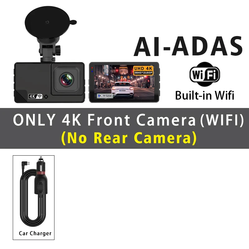 4K 2160P Dash Cam ADAS Car DVR Camera BSD WIFI GPS Dual Lens Mini Video Drive Recorder Dashcam Registrar Black Box Night Vision