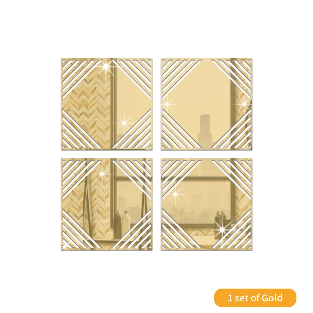 4Pcs Gold Flower 3D Mirror Wall Stickers DIY Furniture Stick Wallpaper Home Decor Cabinet Living Room Living Room Bed Sticker