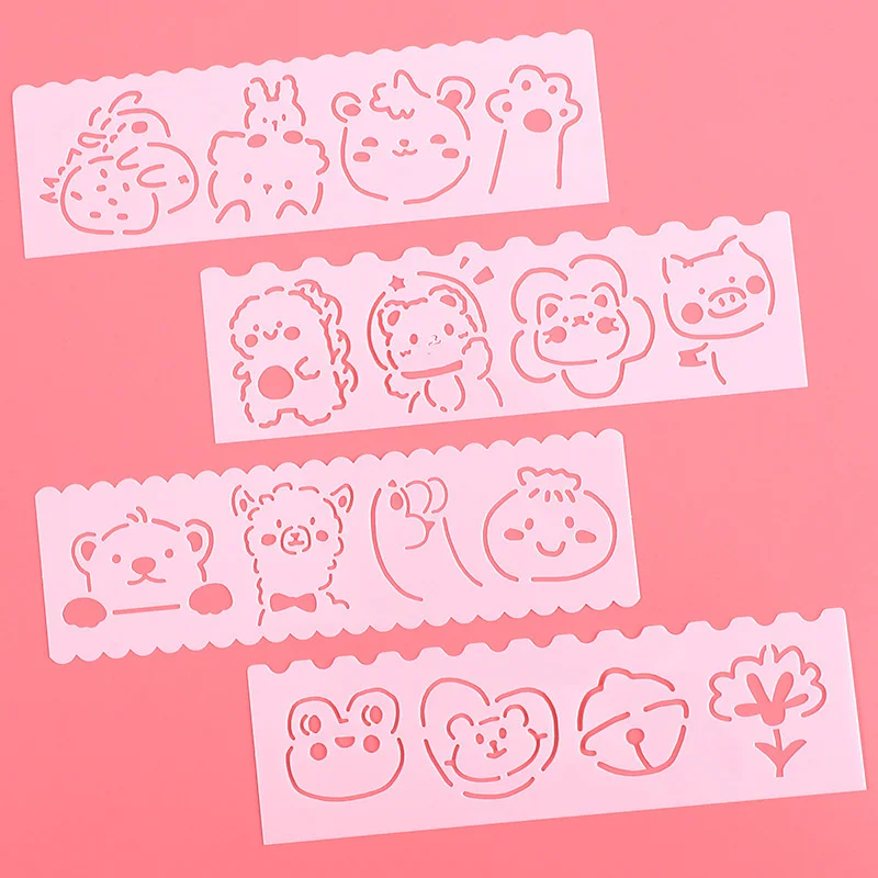 4pcs/set Cute Cartoon Hollow Painting Stencils Students Scrapbook Stamp Biscuit Embossing Decorative Template DIY Art Handcrafts