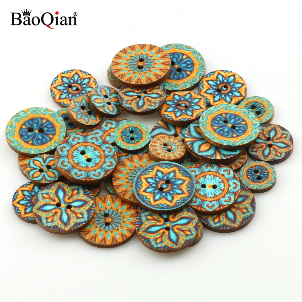 50pcs 15/20/25mm Natural Wooden Round Painted Sewing Button For Clothing Decoration Scrapbook Diy Home Sewing Accessories
