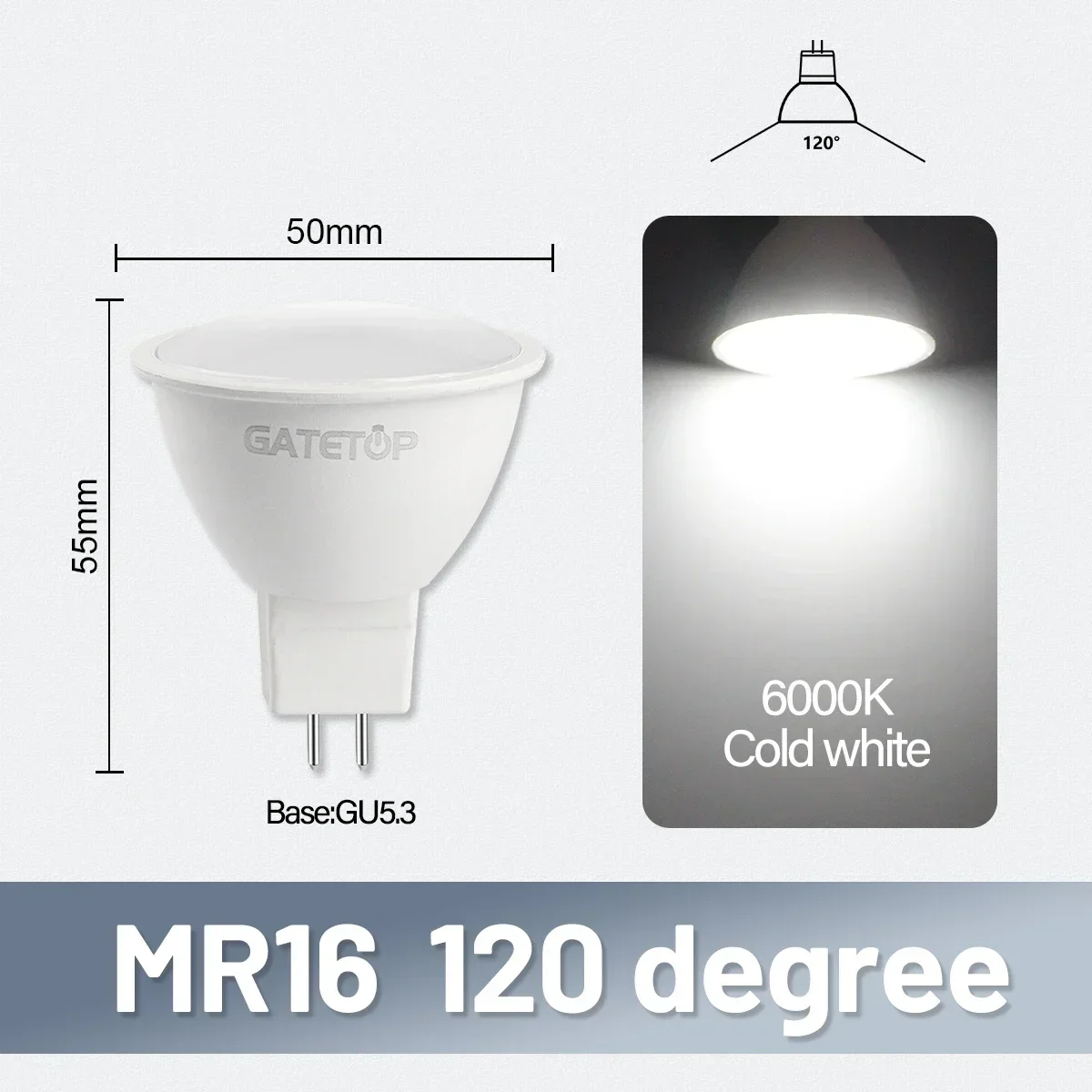 5PCS MR16 Bulb LED Spotlight 120degree GU5.3 Base No Flicker Full Voltage AC/DC12V AC 110V 220V Warm White Suitable for Home