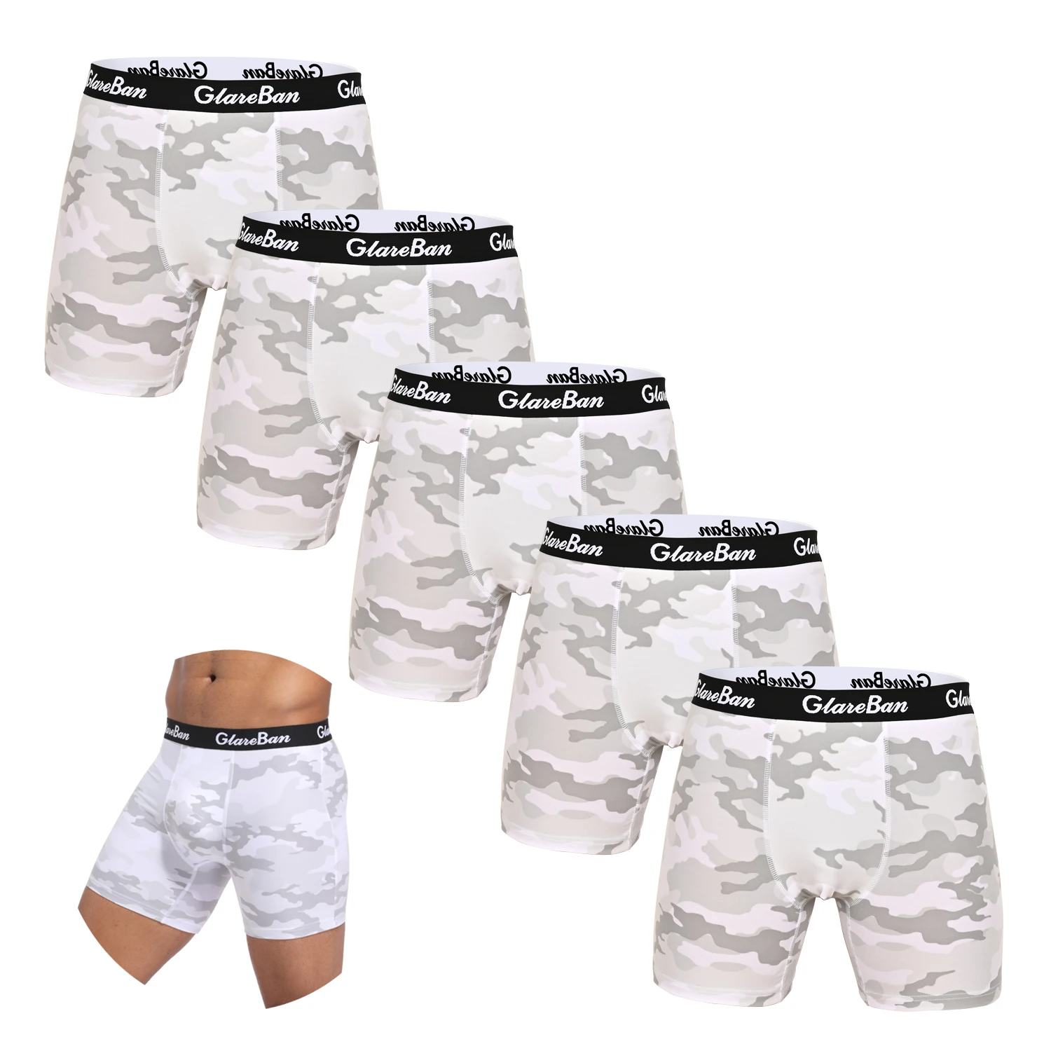 5pcs Set Mid-Long Camo Boxer Shorts Men Underwear Breathable Male Underpants for Men Homme Boxershorts Slips Soft Panties 2024