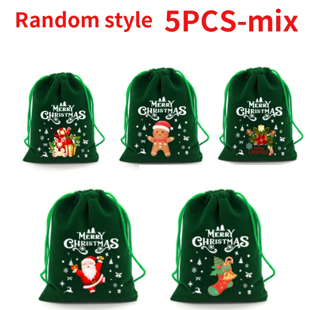 5Pcs/Lot Christmas Velvet Bags Advent Calendar Xmas Gift Bags 9x12 10x16cm Drawstring Pouch Xmas Candy Jewelry Packaging Bags