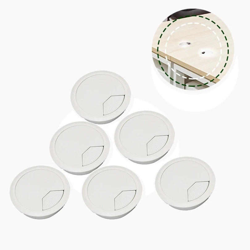 6pcs 50mm White ABS Plastic Desk Cable Wires Grommet Cords Tidy Cable Hole Cover Organizers Computer Desk Table