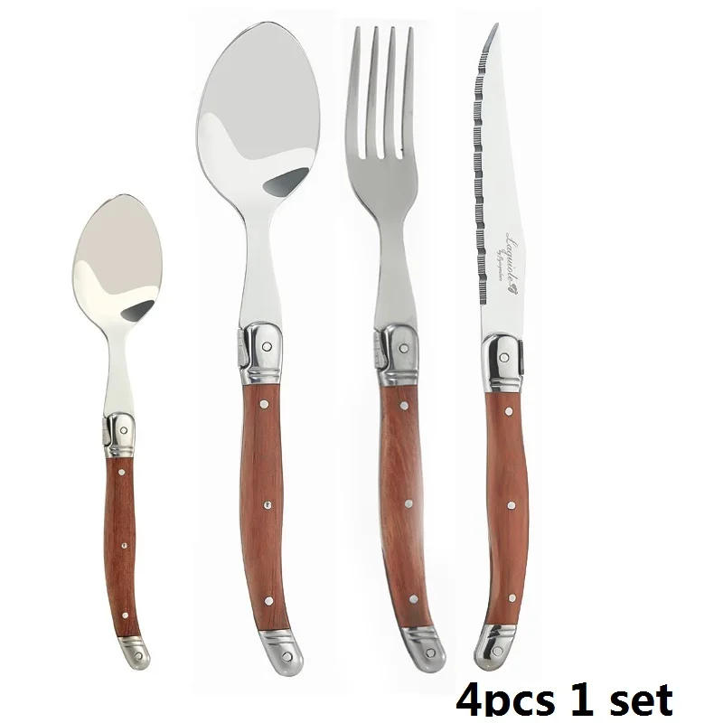 8.5'' Laguiole Steak Knives Table Forks Wood Dinner Knife and Spoon set Stainless Steel Wooden Dinnerware Restaurant Tableware