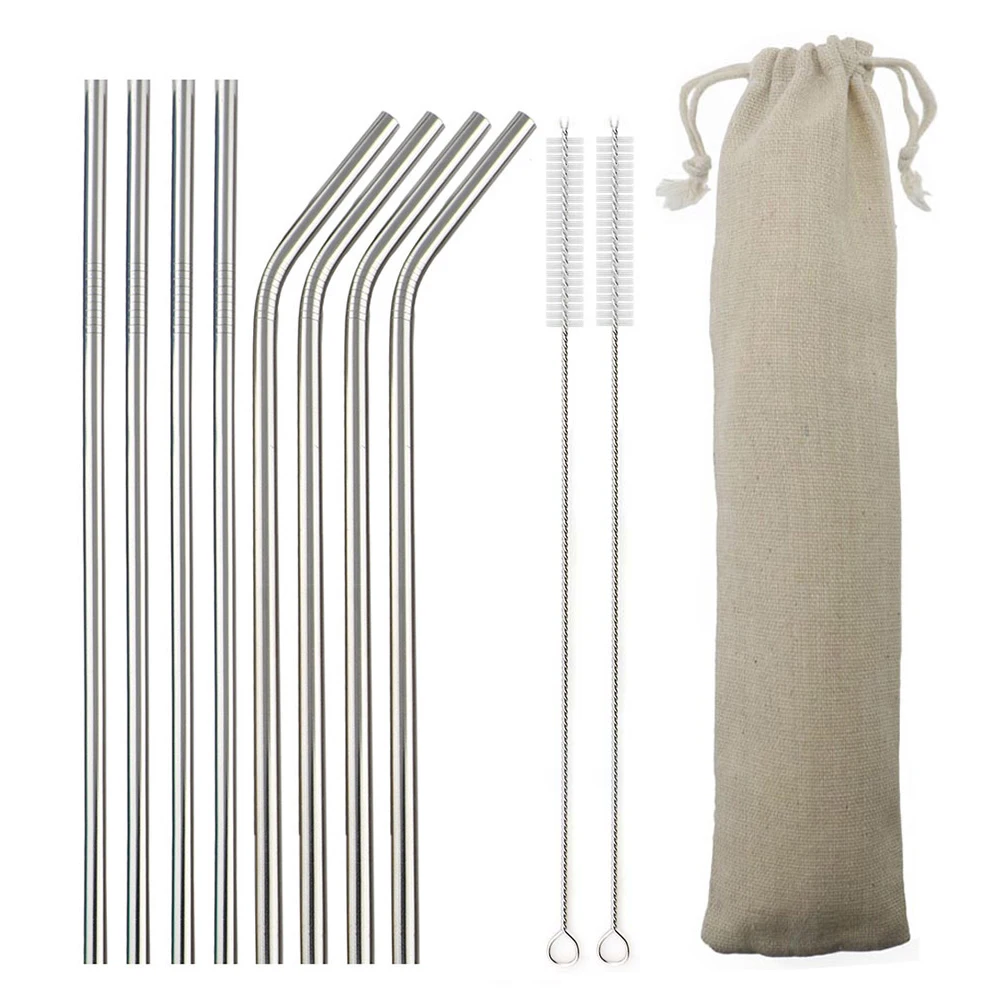 8Pcs Reusable Straw Set Rainbow Black Drinking Straw High Quality 304 Stainless Steel Metal Straw with Cleaner Brush Wholesale