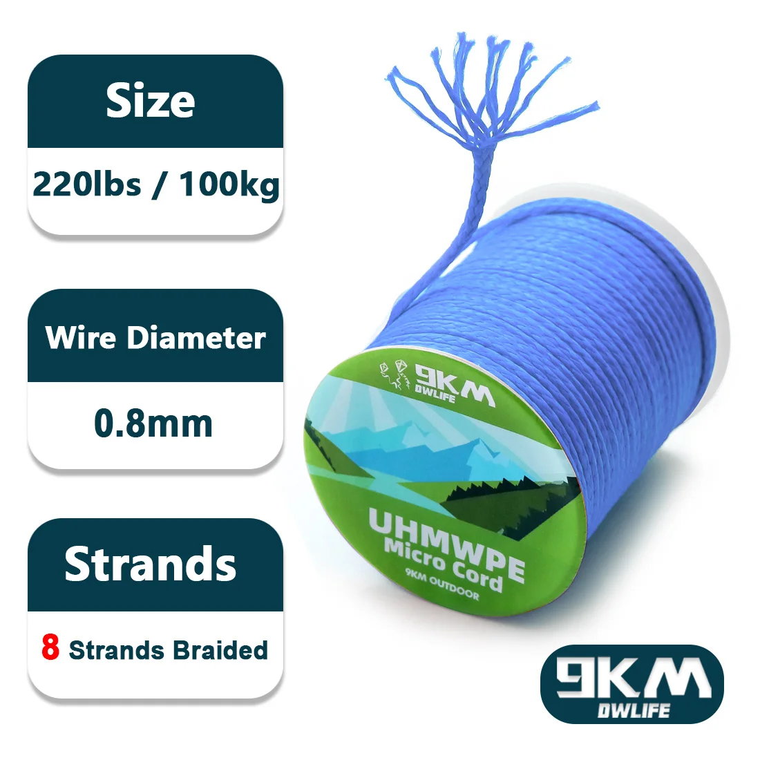 9KM UHMWPE Cord 0.8~1.6mm Hollow Braided Rope Hammock Tarp Tent Rope Kite Line Fishing Climbing Camping Kayak Sailboat 100~750lb