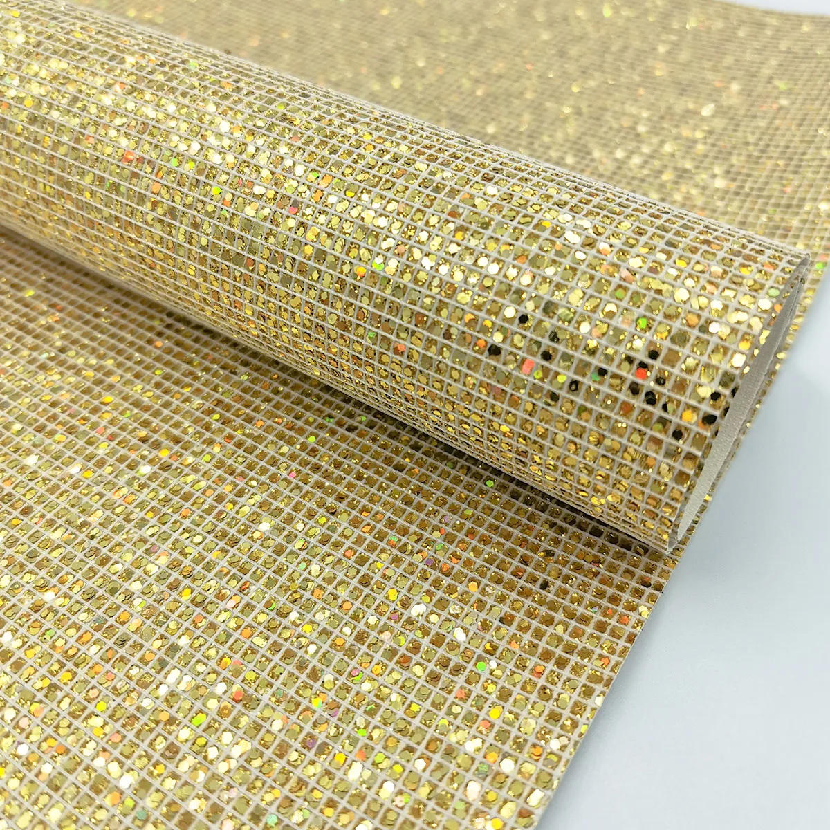 A4 20*30CM Plaid Sequin Chunky Glitter Iridescent Faux Synthetic PU Leather For Sewing Handmade Material Bow Craft Bag DIY