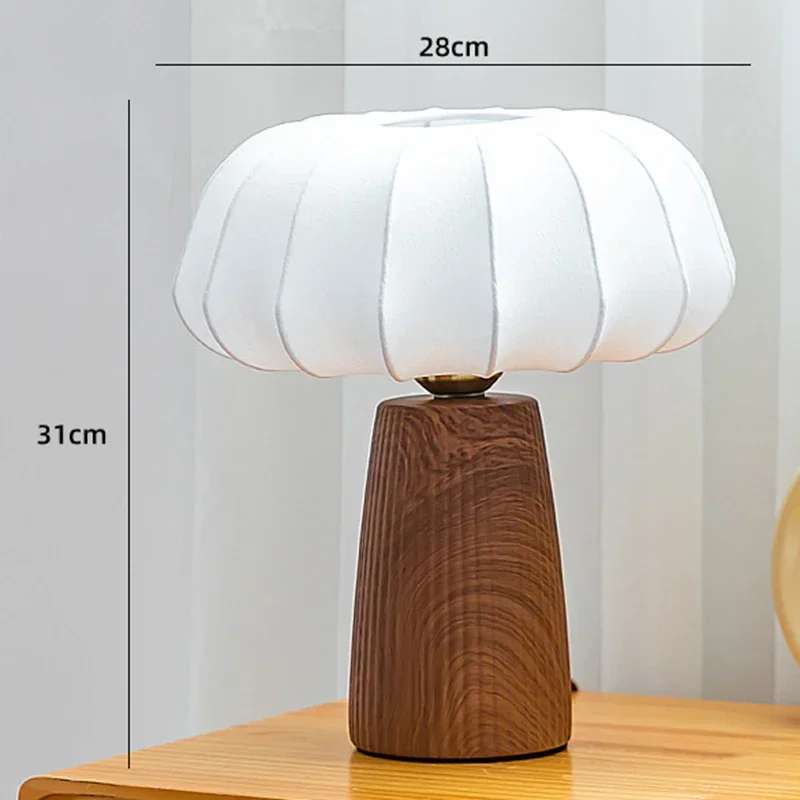 American Vintage Silk Table Lamp Hotel Room Exhibition Hall Room Lamp Study Creative Bedroom Decoration Wood Grain Base Bedlight