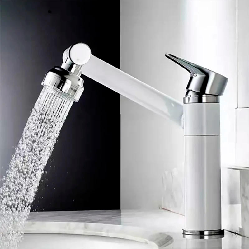 Basin Faucet Mechanical Arm Design Sink Tap 1080° Rotation Deck Mount Single Handle Cold Hot Water Mixer Bathroom Crane