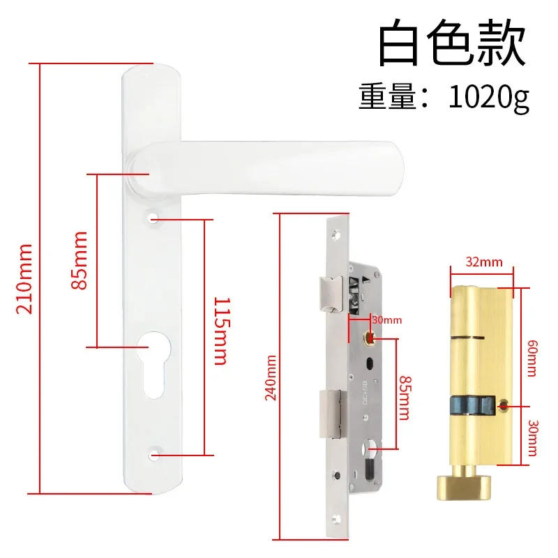 Bathroom Aluminum Alloy Single Point Door Lock Aluminum Alloy Door Handle 85+30 Lock Body Home Improvement Accessories
