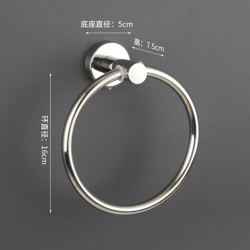 Product Name: Stainless Steel Towel ringMaterial: stainless steelProduct features: corrosion and rust preventionInstallation method: punching holes