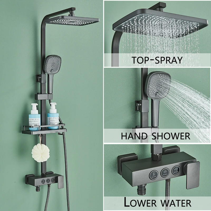 Black Gold Brass Rainfall Shower Faucet Set Stainless Steel Liftable Shower Hot Cold Mixed Water Bathtub Mixer System