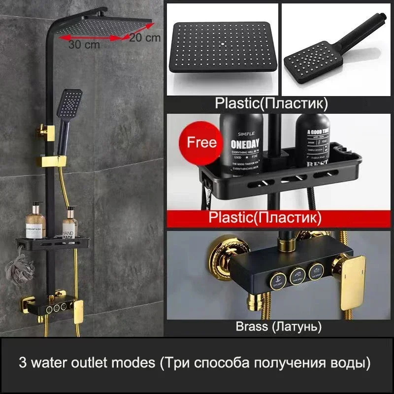 Black Gold Shower Faucet Set Rainfall High Quality Bathroom Mixer Tap Bathtub 4-way with Bidet and Shelf