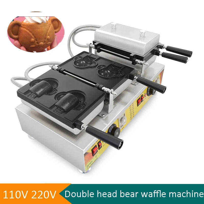 Commercial Little Bear Waffle Making Machine Cartoon Animal Bear Shape Taiyaki Machine Ice Cream Waffle Cone Baking Equipment