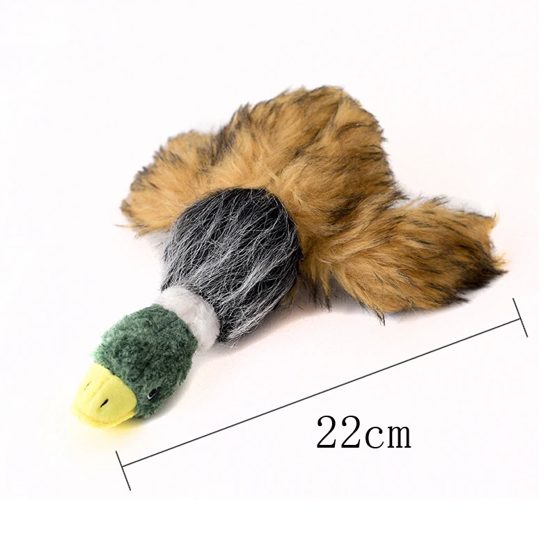Material: Double Polyester Fabric Fur+ Sounding Paper+Sounding Airbag+PP cotton stuffing Length: 28 CM (exclusive of feet) Rope Feet Style Total Length:34 CM Duck Feet Style Total Length:30 CM