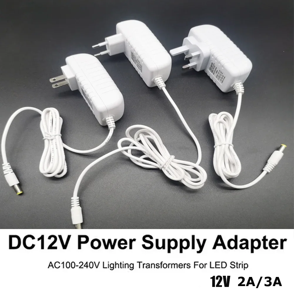 DC12V 2A 3A Adapter power supply 12V US/EU/UK Transformer Charger for 5050 2835 5630 LED string strip Bar Light LED Driver Plug