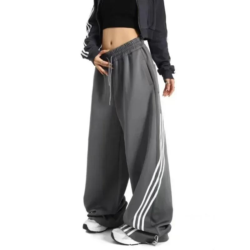 Deeptown Oversized Harajuku Sweatpants Women Black Striped Korean Streetwear Vintage Wide Leg Jogger Pants Kpop Hippie Trousers