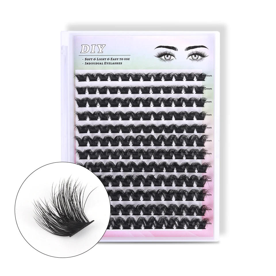 False Eyelashes+Bond and Seal +Remover +Appicator [DIY Eyelash Bundle] Using fantastic imported materials, DIY self-grafting Eyelash thickness: zero 120/240 clusters in a single tray You can observe cluster lashes at domestic on your own Easy to place lashes on, gorgeous results, and lash clusters aren't easily crumble Cluters take less time to complete each eye Now save a lot money and time [BOND and SEAL] Double-ended design, black glue at one end, clear eyelash raincoat at one end In the 1st step, brush the eyelash glue onto the lashes Step 2: Attach lashes conveniently In the 1/3 step, brush a layer of eyelash glue to set the shape [EYELASH GLUE REMOVER] The spiral brush head Oil-based texture precisely brushes gently removes and every lash nourishes lashes,Non-irritating Easy to Clean and function you need to use it at home Safe and advantageous eradicate in a single minute Gentle and non- rritating, clear and residue-free The elimination impact is stronger and it is going to be eliminated with one brush [Eyelash tweezers] Beauty in kind and element Arc chuck lubrication use does not damage the outside The clamping mouth is tight, challenging to fall, clean to wear Surface plating treatment, feel good Moderate opening and shutting elasticity, effortless use