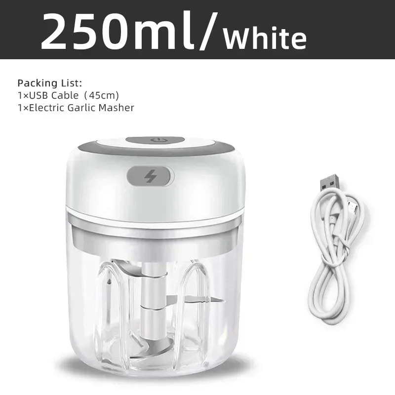 Electric Mini Garlic Chopper,Portable Wireless Small Food Processor BPA-Free 1 One-Touch Operation,high-efficiency, low-noise, low-power 2 Built-in 30w high-power motor, overwhelmed food in 10 seconds 3 USB charging & Long battery life, 30 instances after entirely charged 4 Portable and Wireless,with 250ml capability to make certain daily wishes five The total body is waterproof, easy to be cleaned Description: The electric garlic masher is a one-button change operation the button at the height and it'll mash your meals robotically Put the components into the container, shut the lid, press the switch, and the meals could be chopped in about a seconds The mini garlic chopper is supplied with a 30W motor and three stainless-steel reinforced blades with perfect performance This electric onion chopper is very appropriate for small jobs, such as slicing garlic, ginger, peppers, vegetables, onions, and so forth This food chopper electrical helps USB charging and may be charged anytime and anyplace at home through a USB cable At an identical time, it's a wireless transportable design, which are taken out and used 30 times after being entirely charged It is small and extremely light This is a multi-function gadget, it may be a chopper, mincer, cutter, masher, crusher, grinder or food processor Whatever, it may task many elements reminiscent of garlic, ginger, chili, onions, veggies, some forms of nuts, even small items of meat Free your palms and save your time 304 Stainless Steel Blades------Tri-blades make it more powerful, minimize and mince more quickly Food Grade Bowl-----Certification approved bowl is BPA loose and secure for holding Full Body Waterproof-----Waterproof Design, 360 diploma cleaning, can be rinsed immediately with fresh water