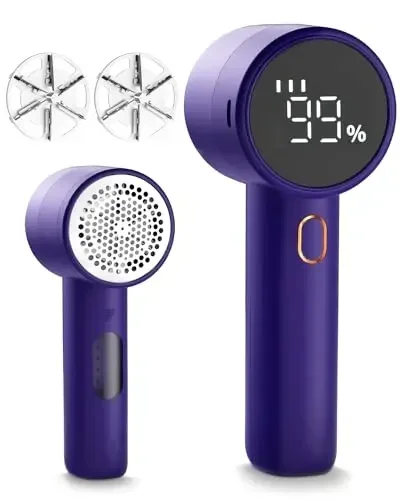 About this product. [Portable Fabric Razor] -- Specially designed to remove lint, pill and lint from sweaters, blankets, curtains, carpets, furniture, sofas, etc.; Compact and portable, 2 inches, ultimate for home use or travel, preserve your clothes searching pristine. INNOVATIVE BLADES】 -- Upgraded 6-blade blades with double cleansing efficiency compared to 3-blade heads, three speeds to deal with varied material forms and pilling strengths with out detrimental your enjoyed one textiles. Tip: It is usually recommended to place clothes flat on a hard surface. DIGITAL LED DISPLAY] -- Stay in control with our intuitive electronic LED display. Easily video display battery level and speed settings to make sure you always have the power you need on your cloth shaver; Long-lasting working time, 2600mAh battery, 2 hours brief charge, as much as three - 4 hours operating time. MULTIPLE PROTECTION】 -- Fabric protection, bionic honeycomb mesh to guarantee material safety; Safety guarantee - if the mesh comes loose, the safety replace will instantly disable the machine to guard your hands; Charging safety - our sweater remover will routinely give up charging after an entire fee Removable Lint Collection Container】 -- Upgraded seen and removable lint sequence container, you might disassemble the container to wash it out, smooth to maintain the lint remover clear What you get】 -- 1 x Electric Fabric Razor, 1 x Cleaning Brush, 1 x C-Cable, 1 x Owner's Manual. Translated with DeepL (free version) Previous web page Next web page Upgraded 6 Leaf blades Digital Led Display Multi-protection Easy to Clean