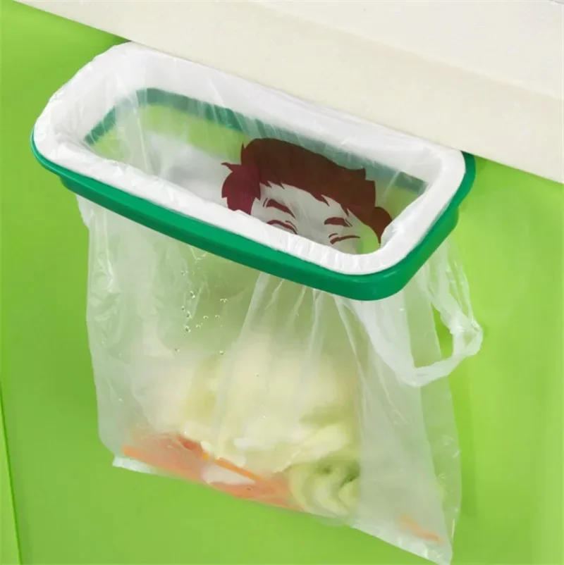 Green Stylish Hanging Garbage Bag Rack with Cover Portable Kitchen Cabinet Rubbish Bag Plastic Rack Support Holder